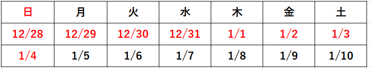 カレンダー赤字の日が休診日となります。年末は混みあいますので、お早めにご受診ください。また、定期薬を切らさぬよう余裕をもってご受診ください。