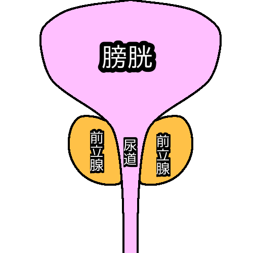 前立腺がんは、膀胱の出口に位置し、尿道を挟むようにある前立腺にできるがんです。前立腺は男性にしかありません。前立腺が肥大し、排尿障害(頻尿や残尿感など)を起こす「前立腺肥大」という加齢とともに増える良性疾患もあります。前立腺がんは、早期では症状がないことがほとんどですが、前立腺肥大と同様に排尿障害を感じることもあります。